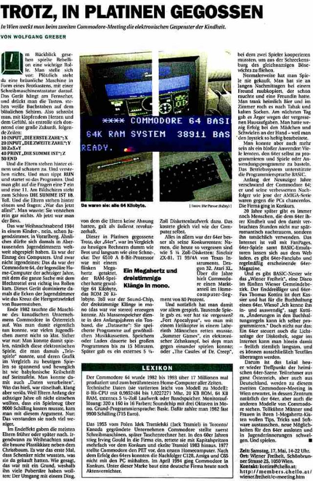 Am Tag, an dem das Meeting stattfand. gab es in der Tageszeitung "Die Presse" einen Artikel von Wolfgang Greber, der auch persönlich kurz beim Treffen war. Die Presse, Samstag 17. V. 2003