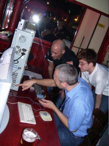 Thomas Dorn führt seinen Draco vor. AMike und C&A_User hören gespannt zu